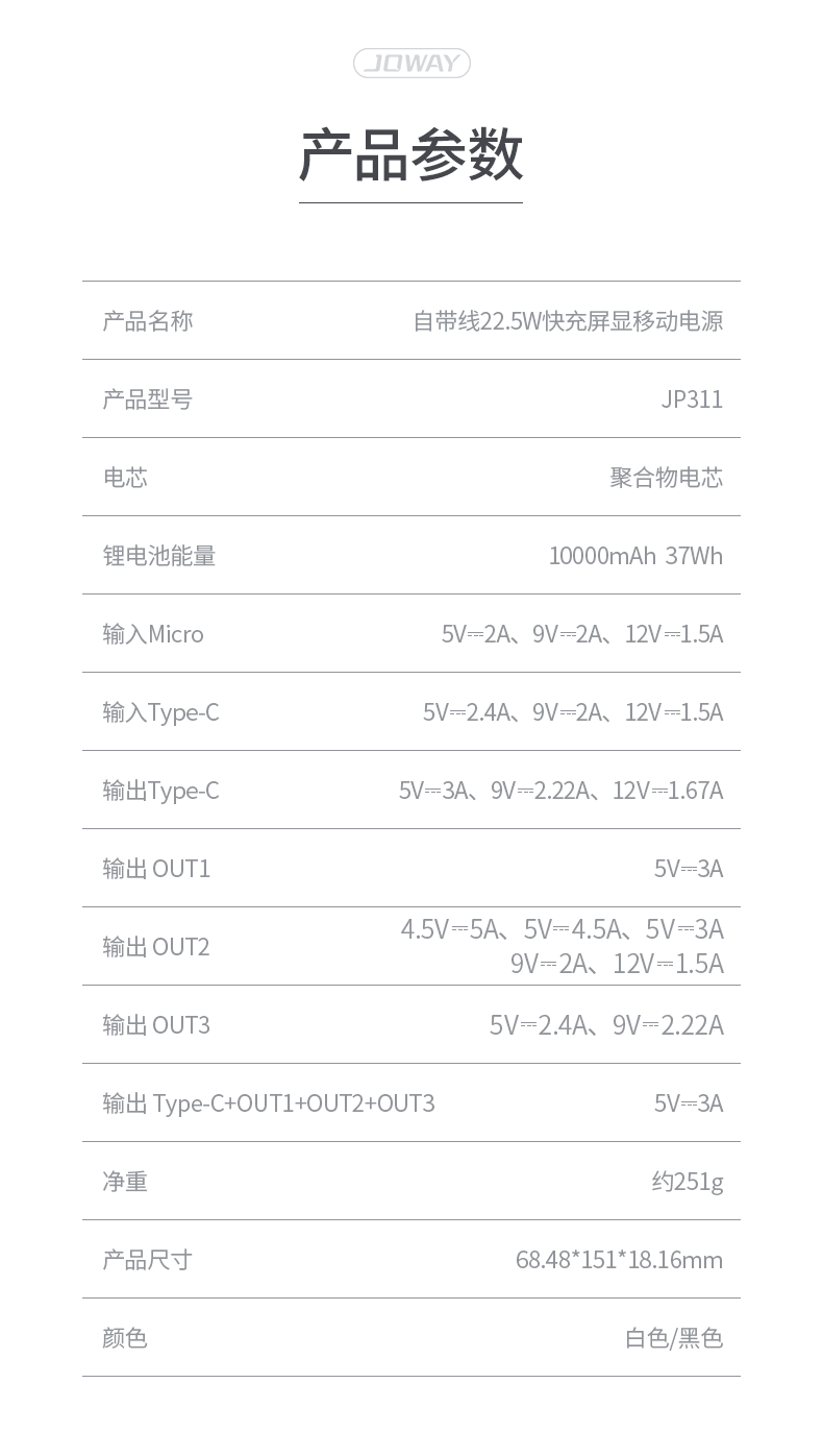 JP311 雙快充線移動(dòng)電源