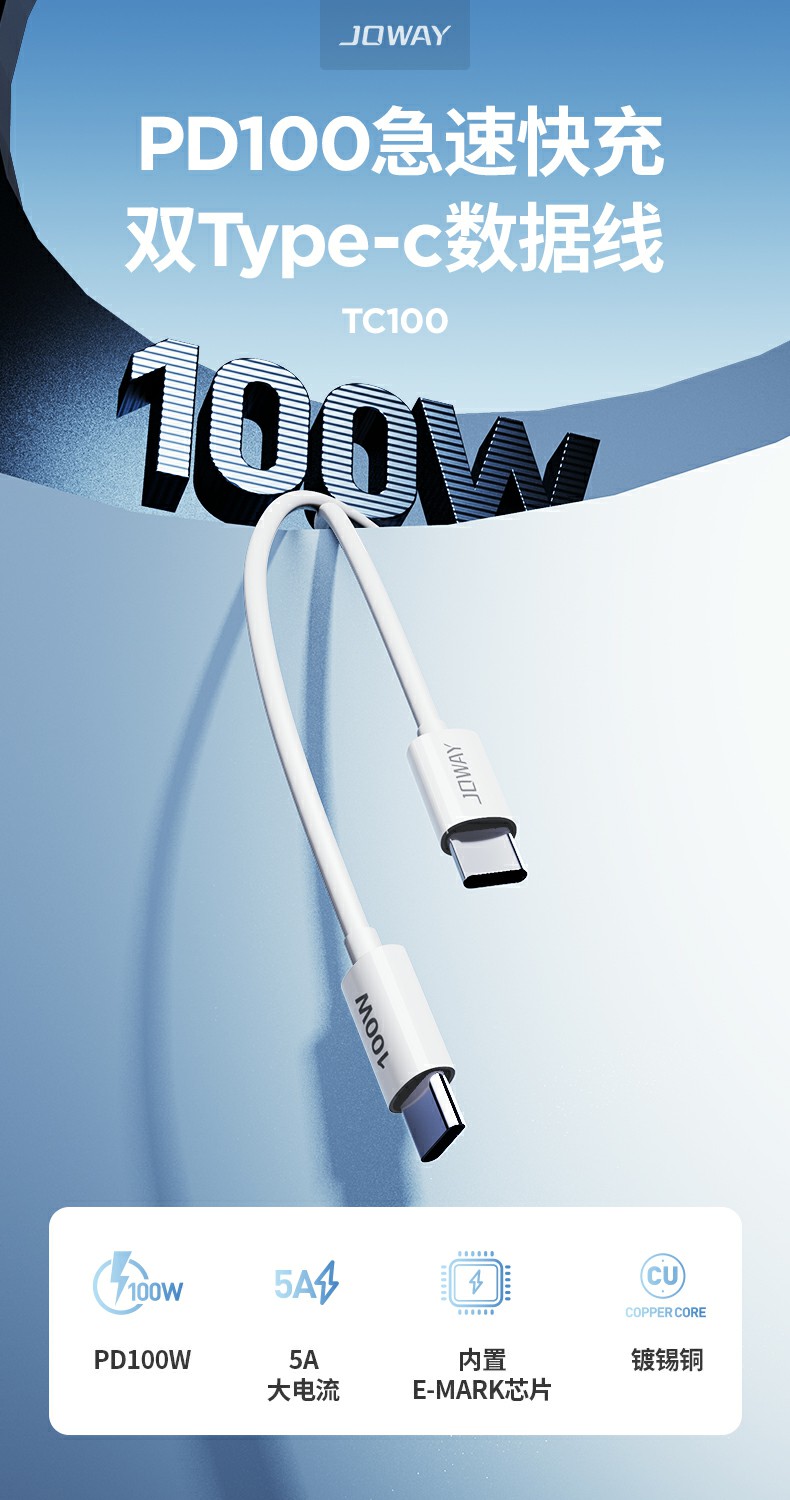 TC100 PD100W快充數(shù)據(jù)線_數(shù)據(jù)線_深圳市喬威電源有限公司