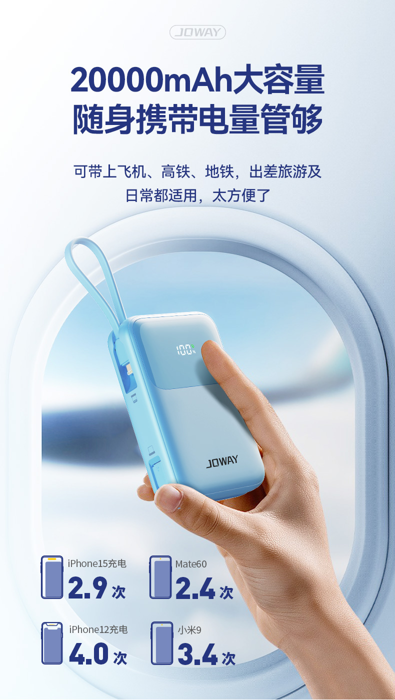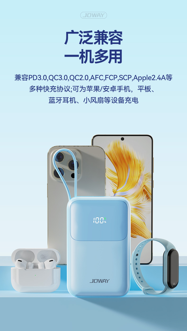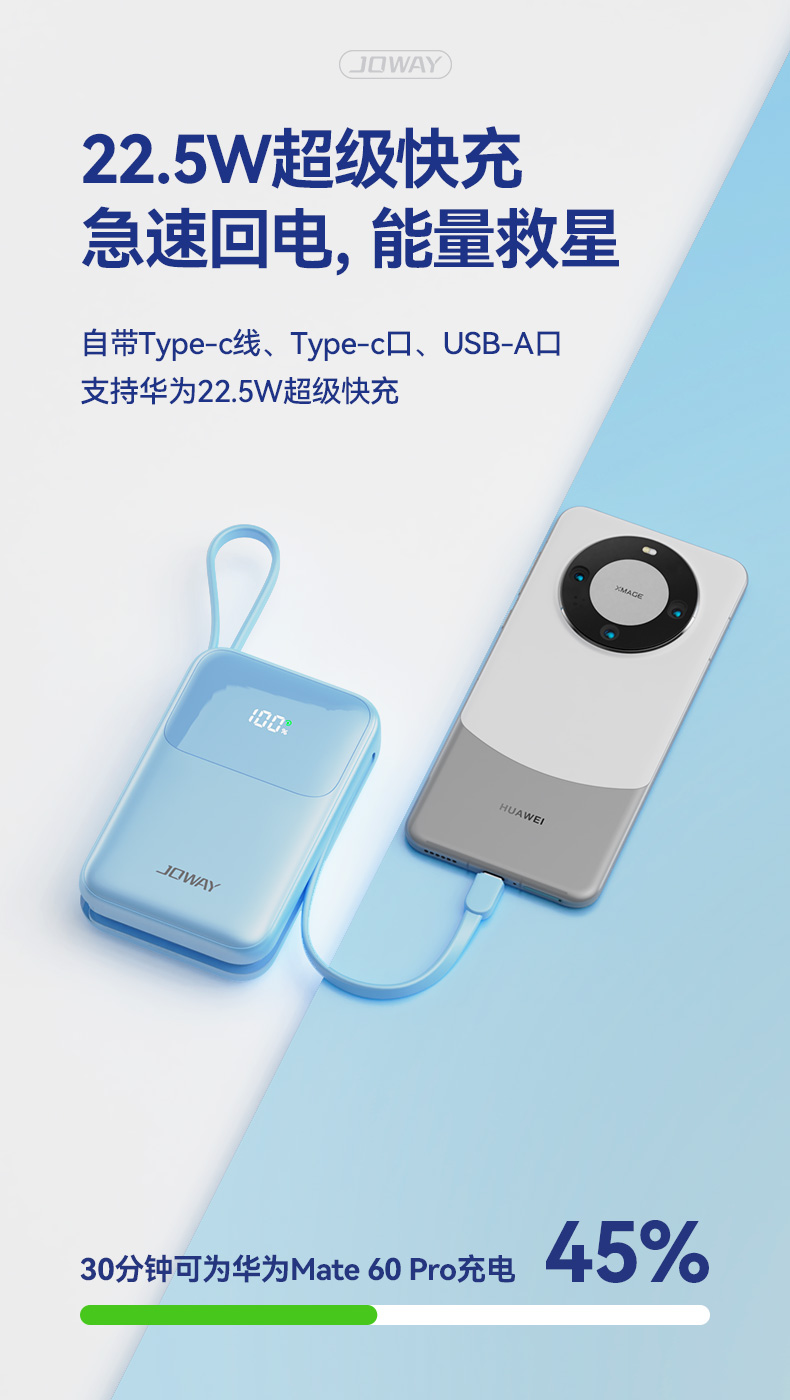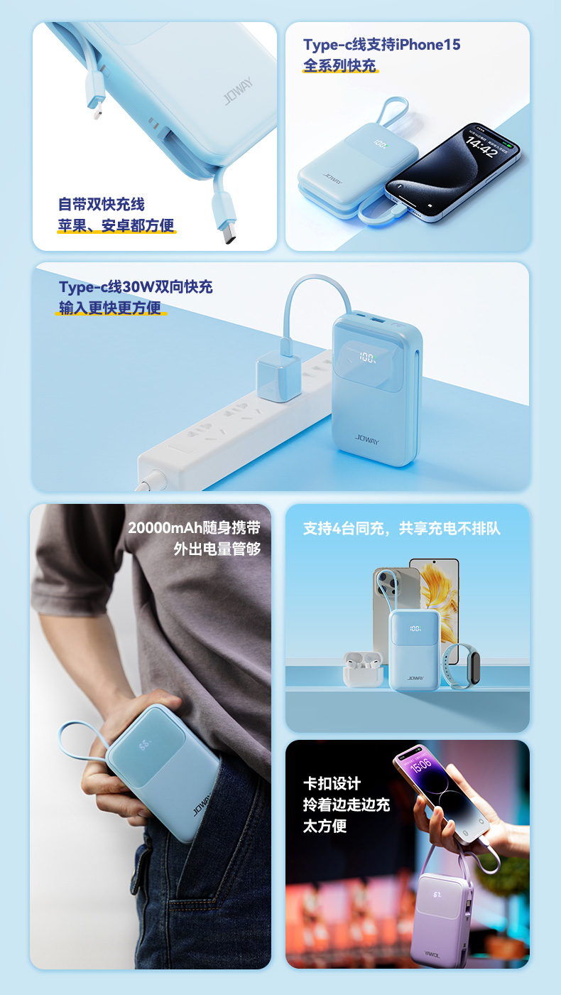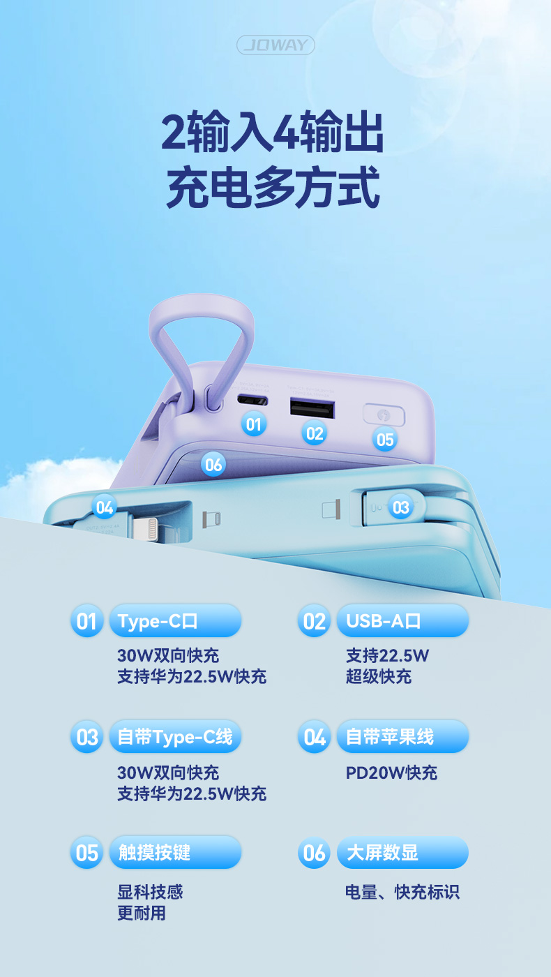 名稱:JP313 30W自帶雙線快充移動(dòng)電源