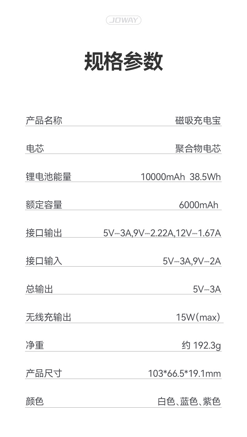 名稱:10000mAh 磁吸充電寶