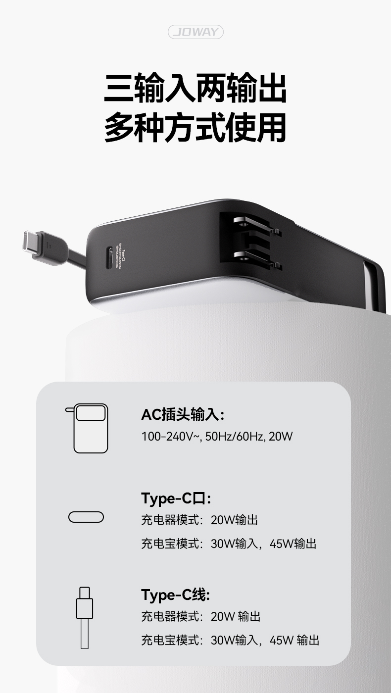 JP368自帶線45W移動電源