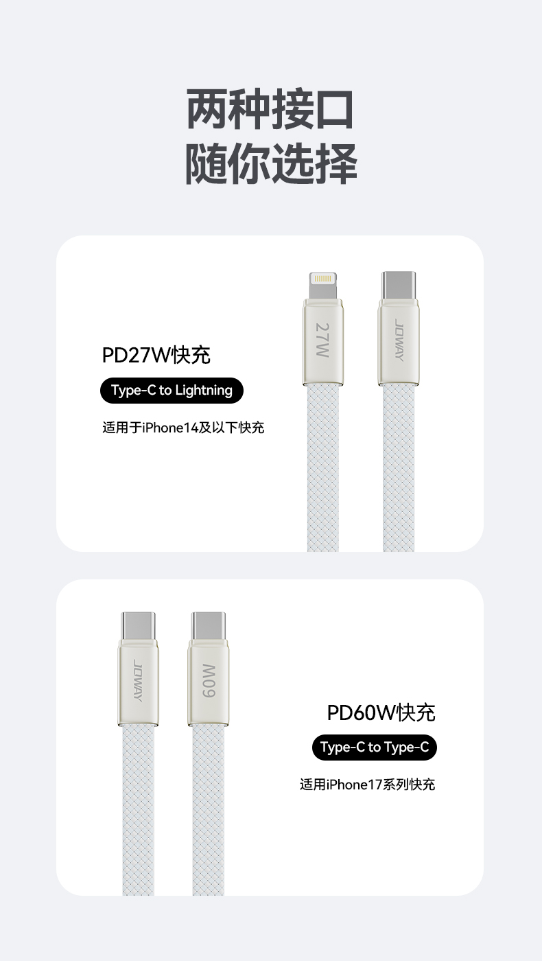 接口類型:Type-C to Lightning / Type-C to Type-C