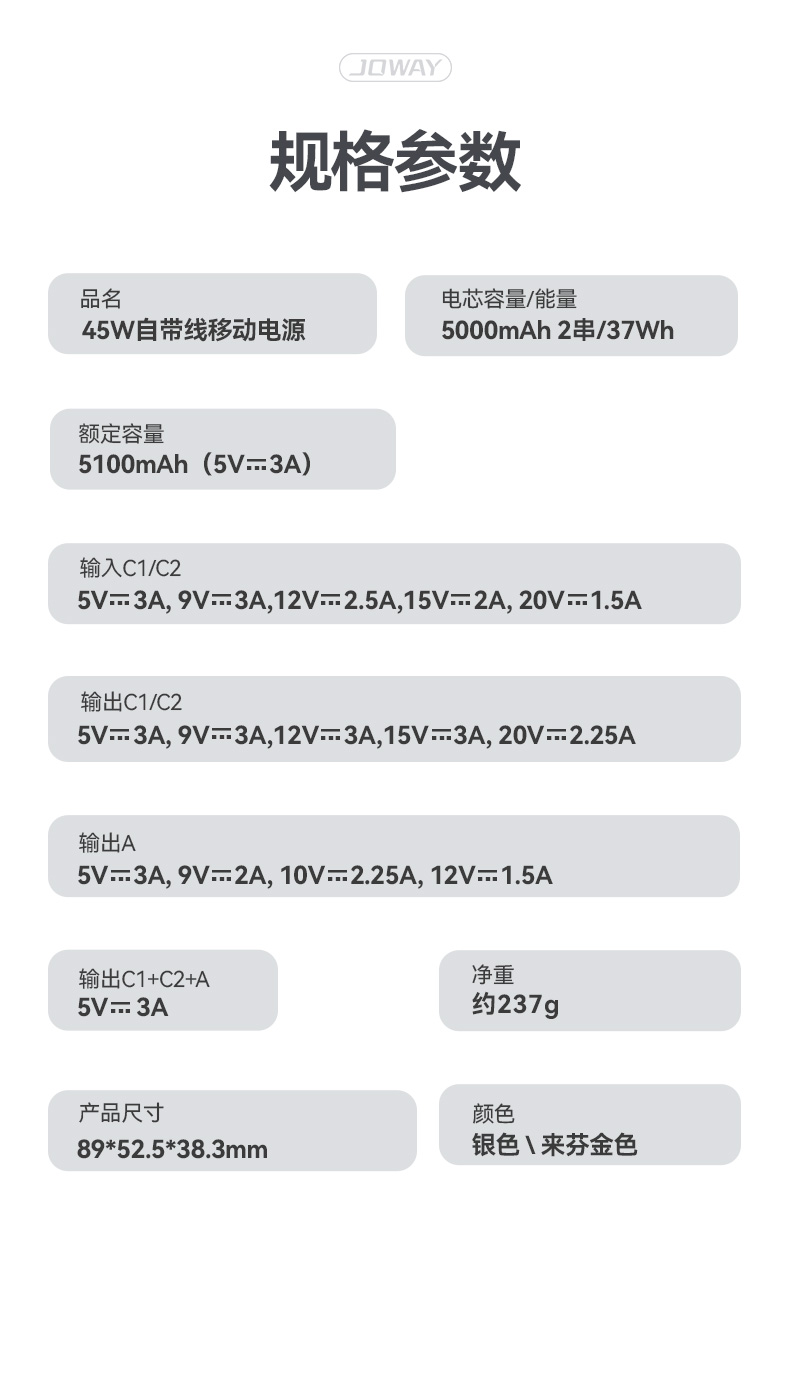 產(chǎn)品名稱(chēng):45W自帶線移動(dòng)電源